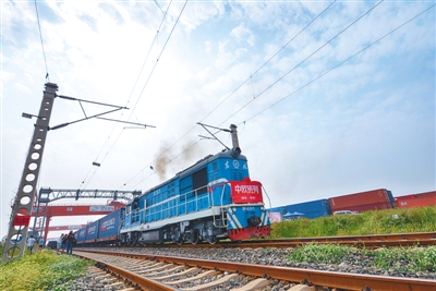 随着“一带一路”建设的推进,西安港成为丝绸之路上的无“水”之“港”,联通四方。图为西安—华沙中欧班列从西安港出发。新华社发