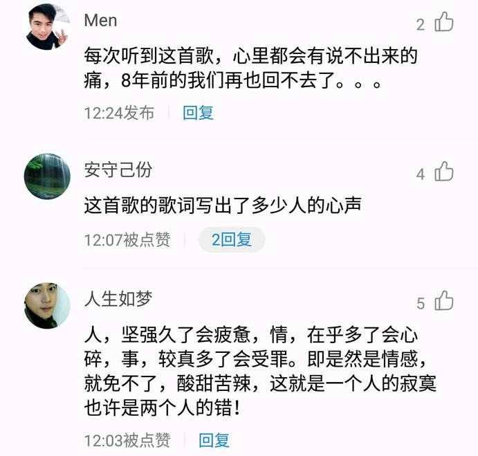 《一个人的寂寞两个人的错》也是粉丝的必点曲目,如果你还不清楚这首歌有怎样的魅力,看看酷狗评论区被感动的网友你就知道了。