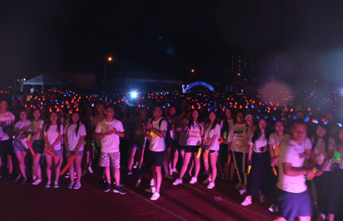 为了让这场“地球上最闪耀的的5公里荧光夜跑”,成为视觉上的盛宴,活动现场的一些诸如跑道、巨型拱门、线路标志等基础设施搭建均采用荧光材料。此外,组织者为参还为参与跑步的学生们准备了多款个性的妆容,包括限量发送的荧光发卡、发光镜框和荧光棒等,整个布景搭配现在现场动感十足的炫酷音乐,处处彰显青春活力。
