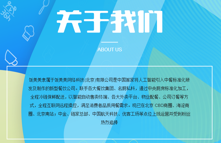 饭美美不同于餐饮门店,前端通过契合商业物业项目的设计,布设具有专利技术的自动售卖机,用更安全、更便捷的方式,将美味的呈现形式和呈送距离高度优化,减少在温度、香气方面的流失,带给消费者更好的味觉体验。通过自建的中央厨房、冷链物流及订餐系统,将美味从生产的源头到销售的终端全过程形成闭环。饭美美不是一个单纯的品类零售电商,而是通过美味这一核心概念,将更多的人群通过信息化的系统连结到了一起。在未来,无论是烤鸭还是火锅,无论是百年老店还是口味小馆,无论是身在纽约还是东京,都可以在饭美美的售卖机里收获你想要的惊喜。