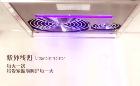 紫外线杀菌具有无色无味无化学物质遗留的优点。电子健康宠物笼的电子控制盒底部装有紫外线灯管,直接照射笼子的整个空间。30分钟的工作时间,能有效杀灭笼子内部的大肠菌杆菌、金黄色葡萄球菌、鼠伤寒沙门氏菌、肺炎克雷伯氏菌、白色念珠菌等多种细菌。