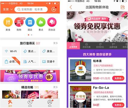 用户只要打开大众点评app进入海外站,在日本、韩国、泰国、香港、澳门、台湾、马来西亚、新加坡、柬埔寨、法国、德国、英国、美国、加拿大、奥地利、意大利等热门国家或地区的具体城市,就可以通过“购物”入口查看到该地最值得去的购物胜地,并领取相关优惠券。