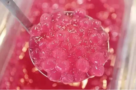 搅拌、倒汁、揉面、成型,每一颗手作珍珠都需要经过这四个步骤,经过机器的高速运转,木薯粉从白色的粉状抱作成团,一颗颗跳动的手作珍珠欢欣鼓舞的跳进容器,又一颗颗色彩鲜明的跳出来。
