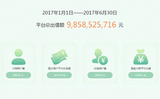 整体来看,金信网上半年运营情况良好,半年间平台总出借额约98.6亿元,累计撮合交易额达403.03亿元,注册用户达到174.02万,其他各项指标也在稳健提升。