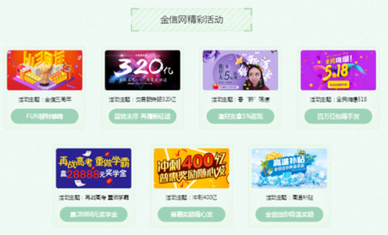 金信网半年运营报告盘点了上半年行业亮相、荣誉获奖以及一系列回馈用户的行动。半年来,金信网以协办单位参与胡润新金融百强榜大会、亮相2017博鳌亚洲论坛、参加声誉2017企业社会责任峰会、出席2017中国经济媒体领袖峰会等,品牌活动精彩纷呈,并获得“互联网金融企业社会责任奖”、金i奖之“2016年度产品奖”、“2016年度金牌互联网金融平台奖”、“中国最具创新价值金融科技企业奖”等诸项荣誉,在业内不断受肯。