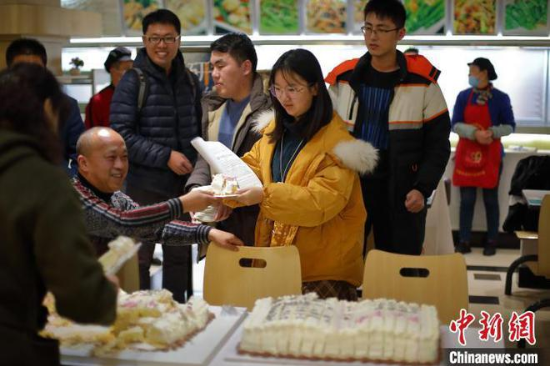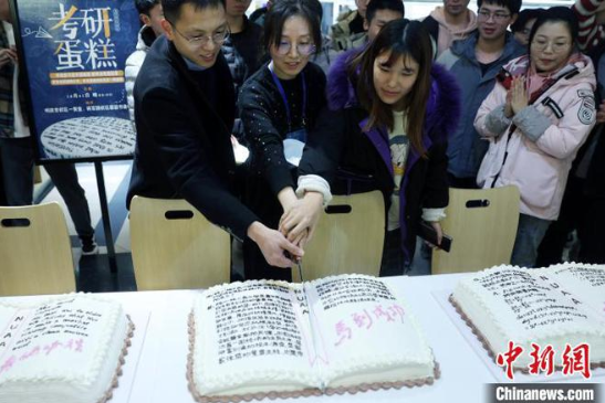 中国新闻网讯:21日晚10点,南京航空航天大学食堂的“考研自习室”灯火通明。该校食堂向考研学子免费派发专门定制的“记忆蛋糕”,意在“把知识吃进肚子里”,祝福他们考研成功。